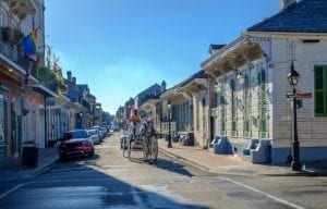 In 1803, Louisiana went back to the French, who sold the city to the United States that same year in the Louisiana Purchase. Just a short time later, the so-called Shotgun houses were developed in New Orleans. This narrow rectangular house is usually no more than about 12 feet wide. It became the city’s predominant house type. The rooms are arranged one behind the other and doors at each end of the house. The first Shotgun style houses were build in the rear for the French Quarter and and in Faubourg Treme as early as around 1810. People kept building shotguns through the 1920s. To this day, you can find them throughout the city.